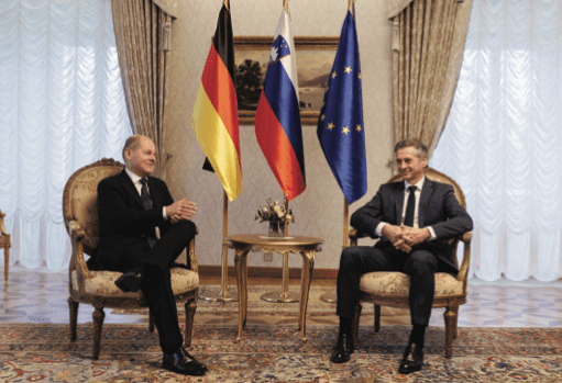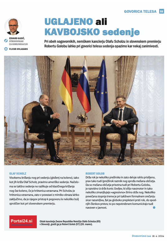 Pri obeh sogovornikih, nemškem kanclerju Olafu Scholzu in slovenskem premierju Robertu Golobu lahko pri govorici telesa sedenja opazimo kar nekaj zanimivosti: