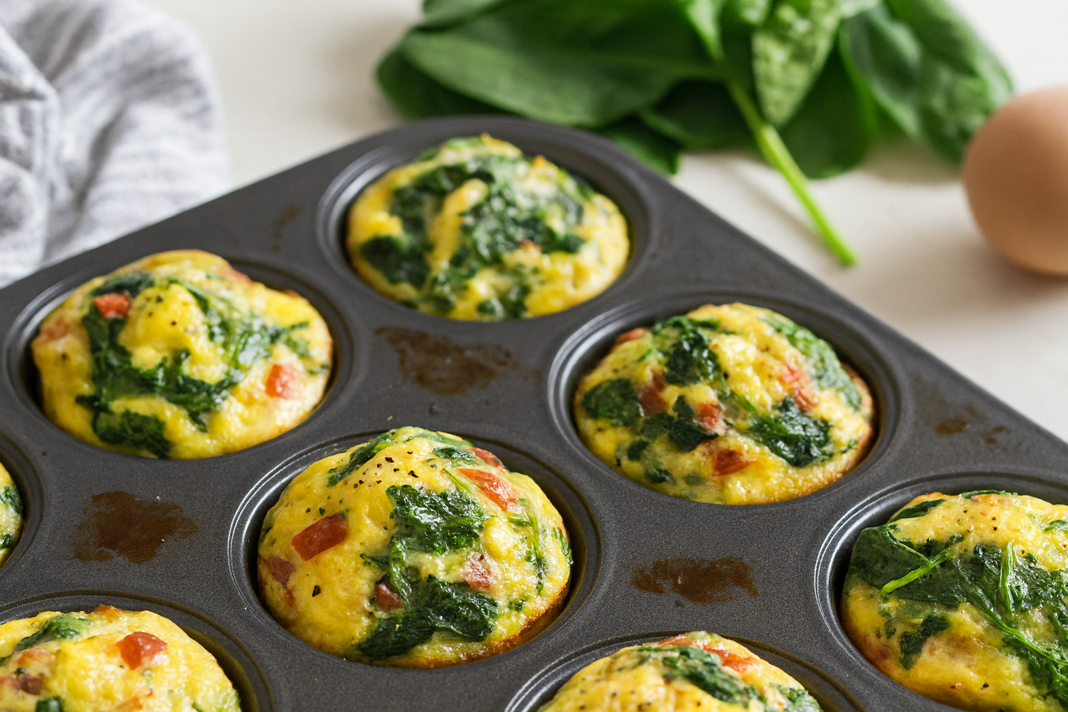 Recept: slani beljakovinski mafini z jajci in špinačo