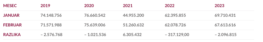 Tudi zmanjšanje števila izdanih računov v februarju 2023 je v skladu s podatki iz preteklih let, saj je bilo februarja 2019 izdanih 2.576.768 manj računov po davčnih blagajnah kot januarja 2019. Podobno je tudi leta 2023, ko je izdanih 2.096.815 računov po davčnih blagajnah, kar pa je 479.953 manj kot tako opevanega leta 2019. Zato je zame letošnje leto, pa tudi leto 2022, glede na predhodni dve koronski leti, uspešno.